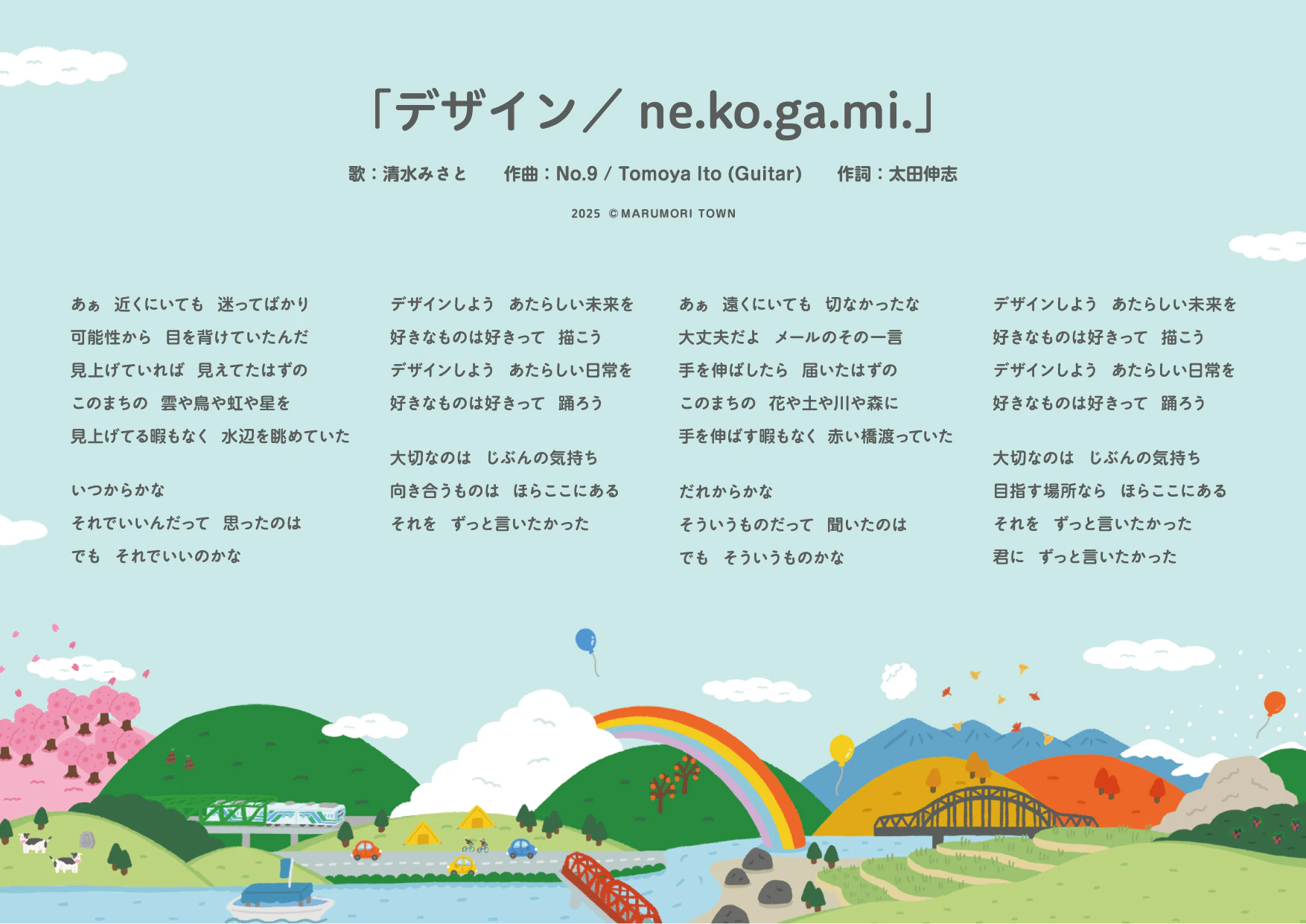 自分の本当の気持ちと向き合って、自分が好きなものは好きと言っていい。その行動が、あたらしい未来をつくるはず。第六次丸森町総合計画の理念「DESIGN NEW MARUMORI つくろう、あたらしい日常を。」に込められた想いを曲に込めました。